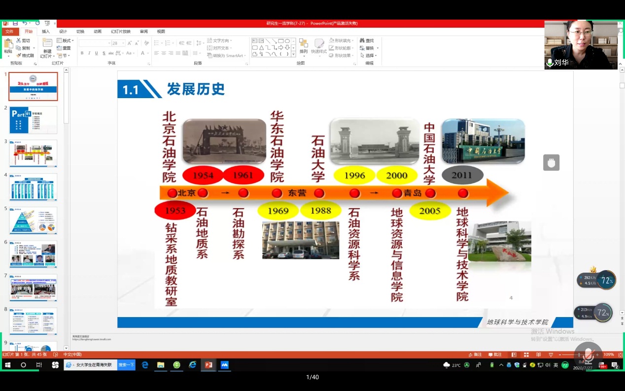 学院党委书记刘华致欢迎辞。她代表学院对参与夏令营的全体同学表示热烈欢迎。随后,刘华书记从发展历史、学院机构、师资队伍、学科学位点、永利官网培养五个方面对学院的概况进行生动讲解,同时结合近年来学院科研团队连续攻克复杂油气地质勘探难题的成果实例,展示学院的雄厚实力。“永利官网作为双一流学科所在的学院,一直为国家能源行业输送大量人才,全国各大油田都能看到地院学子的身影。”刘华书记讲道“未来几天各位营员将和学院优秀的教师通过“云端”面对面交流,希望同学们在此次夏令营中发挥出色,崭露头角,脱颖而出。”