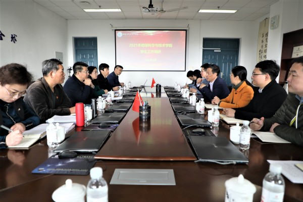 徐永涛以“红蓝导向,经纬育人”为题向调研组介绍了学院学生工作的整体情况,从红线管理、价值引领、发展指导、资源支持等方面汇报了工作特点及思路,并就当前学生工作开展情况和面临的主要问题进行分析研判、提出解决措施。徐永涛表示,近年来学院学生工作队伍落实立德树人根本任务,坚持“在成就学生中成就自我”的价值观,围绕学生、关照学生、服务学生,构建了“大地经纬育人平台”,通过系统架构和灵活机制整合各方资源,有力地引领和助推学生发展,打造“三全育人”的“地院方案”。与会辅导员结合“五进”开展情况和工作体会,就学生工作运行机制、辅导员队伍建设、学生干部选拔培养、学生综合素质评价考核等方面剖问题、谈思路、提措施。