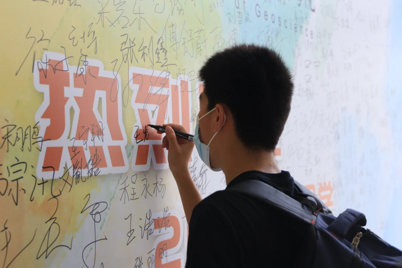 新生在迎新文化墙上留下名字 刘坤达摄影