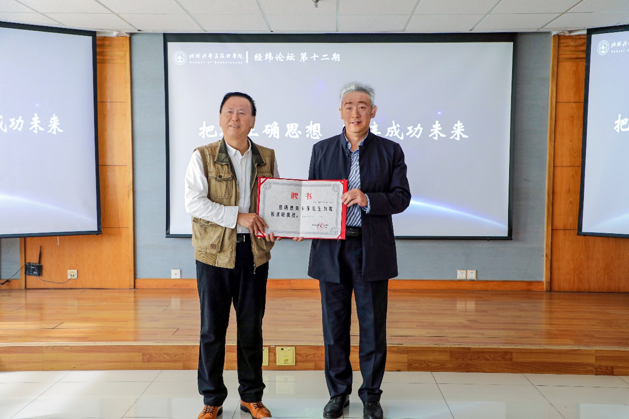 报告开始前,赵放辉代表学校向刘玉强颁发永利集团兼职教授聘书。