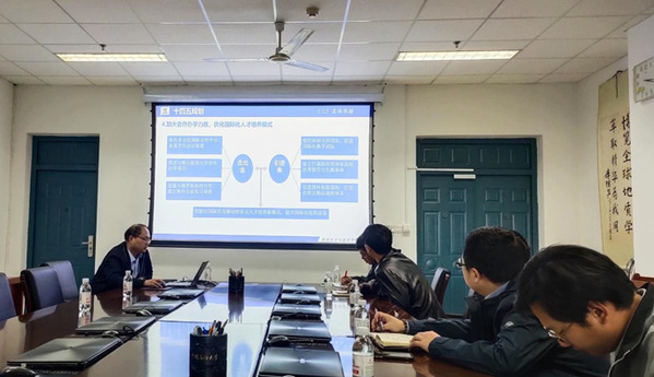 首先,副院长王健对学院国际合作交流“十三五”工作进行了总结,并对“十四五”规划建设任务进行了说明。他指出“十三五”期间,借助“双一流”学科建设,学院在外事工作取得一系列成绩,但在某些指标上和国际交流实质性合作方面还存在一定问题,尤其是在长聘外籍专家数量、国际永利官网培养质量、留学生培养方面还存在较大的差距,也是学院“双一流”建设中存在的较大短板,因此,“十四五”期间,学院在国际交流与合作方面的任务仍然十分艰巨,为提升“双一流”学科建设水平,建成世界一流的“地质资源与地质工程”学科,学院全体师生需要提高站位,统一思想,凝聚力量,高质量提升学院国际化办学水平。王健表示,“十四五”期间,学院将重点推进国际合作项目申请、引智基地建设和创新型合作项目申请、国际英文期刊创建、品牌国际会议打造、学生国际化培养及留学生招生等方面的工作。同时,学院也将出台并实施国际交流合作激励制度和奖励措施,全面推进师生开展国际化交流活动。