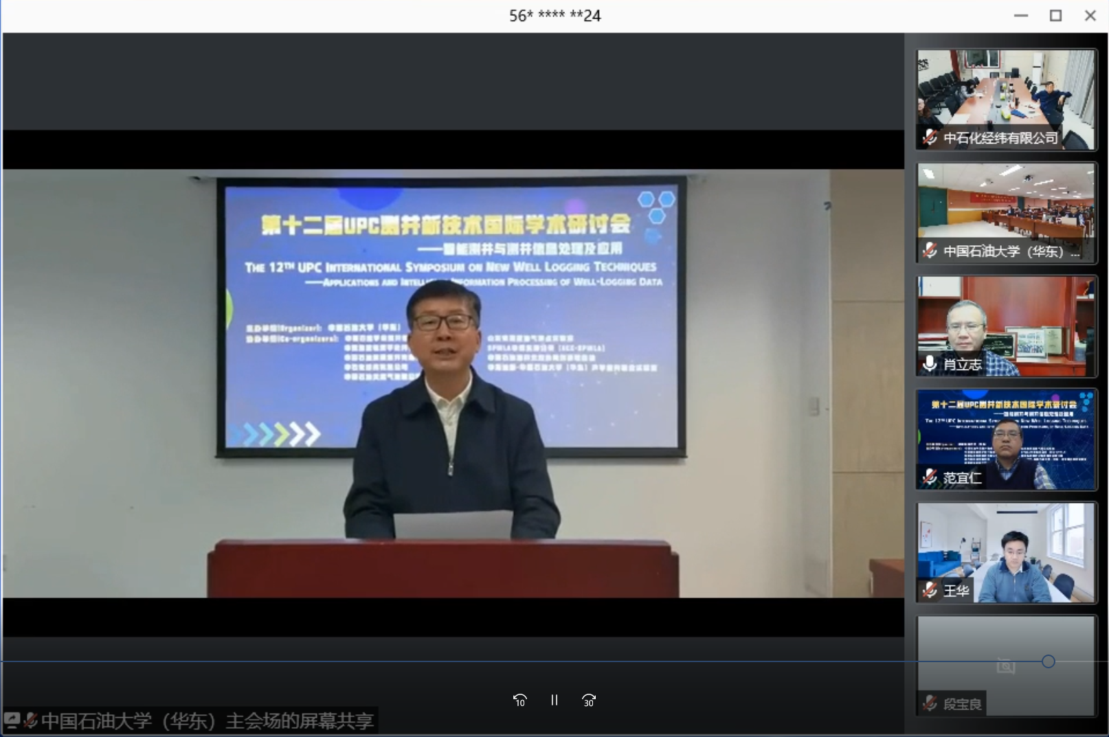 开幕式由学院院长刘华教授主持。开幕式上,学校副校长姚军教授致欢迎辞,他代表学校对研讨会的召开表示祝贺,对参加会议的代表表示欢迎,并感谢油田现场及世界各地专家学者长期以来对学校永利官网培养和学科发展等方面的支持和关心。他指出,人工智能、大数据和云计算等作为新一轮工业革命的关键性技术,已逐渐成为油气产业变革的“新引擎”,研讨会以“智能测井与测井信息处理应用”为主题,较好地契合了国家工业4.0智能化发展战略,必将对学校“双一流”建设和更好地服务于油气勘探开发起到积极的助推作用。姚军副校长充分肯定了测井行业近几年在科技进步、资源整合、校企合作等方面的亮眼表现以及永利集团测井学科在科研及永利官网培养等方面的优异成绩。在开幕式上致辞的代表还包括中石油集团公司科技管理部总经理匡立春教授、中石油集团测井有限公司副总经理陈锋教授级高工、中石化经纬有限公司副总经理潘军教授级高工和SPWLA副主席Harry Xie博士,嘉宾们纷纷感谢永利集团在新冠疫情期间为测井界同行们提供的国际学术盛宴。