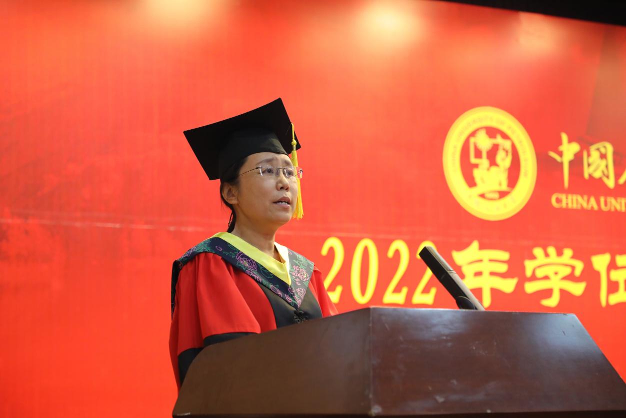 资源勘查工程专业冯家乐作为本科毕业生代表发言,他说:“过去四年,是汲取知识,快速成长的四年;是文体相长,多姿多彩的四年;是挖掘潜能,追寻自我的四年。无论将来继续深造还是走上工作岗位,我们都能以‘人生万事须自为,跬步江山即寥廓’的境界奋发前行,用科学知识攻关‘卡脖子’难题,用实际行动不负党和人民的期待,将勘探精神体现在每分每秒的工作上!”