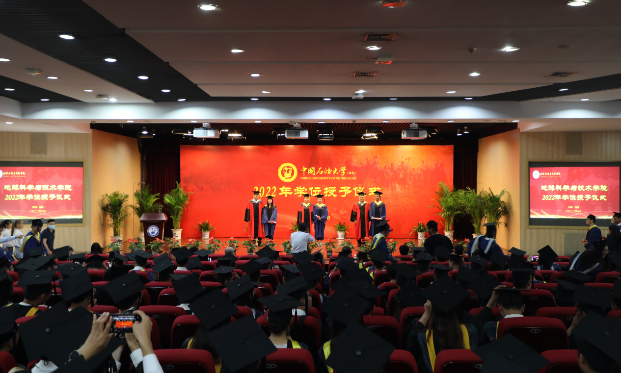 6月22日,学院2022年毕业典礼暨学位授予仪式在逸夫礼堂隆重举行。学院2022届全体毕业生,学院院长刘华、党委书记赵放辉,副院长宗兆云、张宪国、王健,学院教授委员会主任刘可禹,学位评定分委员会成员杜启振、陈勇、王民,资源系主任张立强、测井系主任张锋、非常规油气研究中心主任李吉君及教师代表参加毕业典礼暨学位授予仪式,党委副书记郑珊珊主持典礼和仪式。