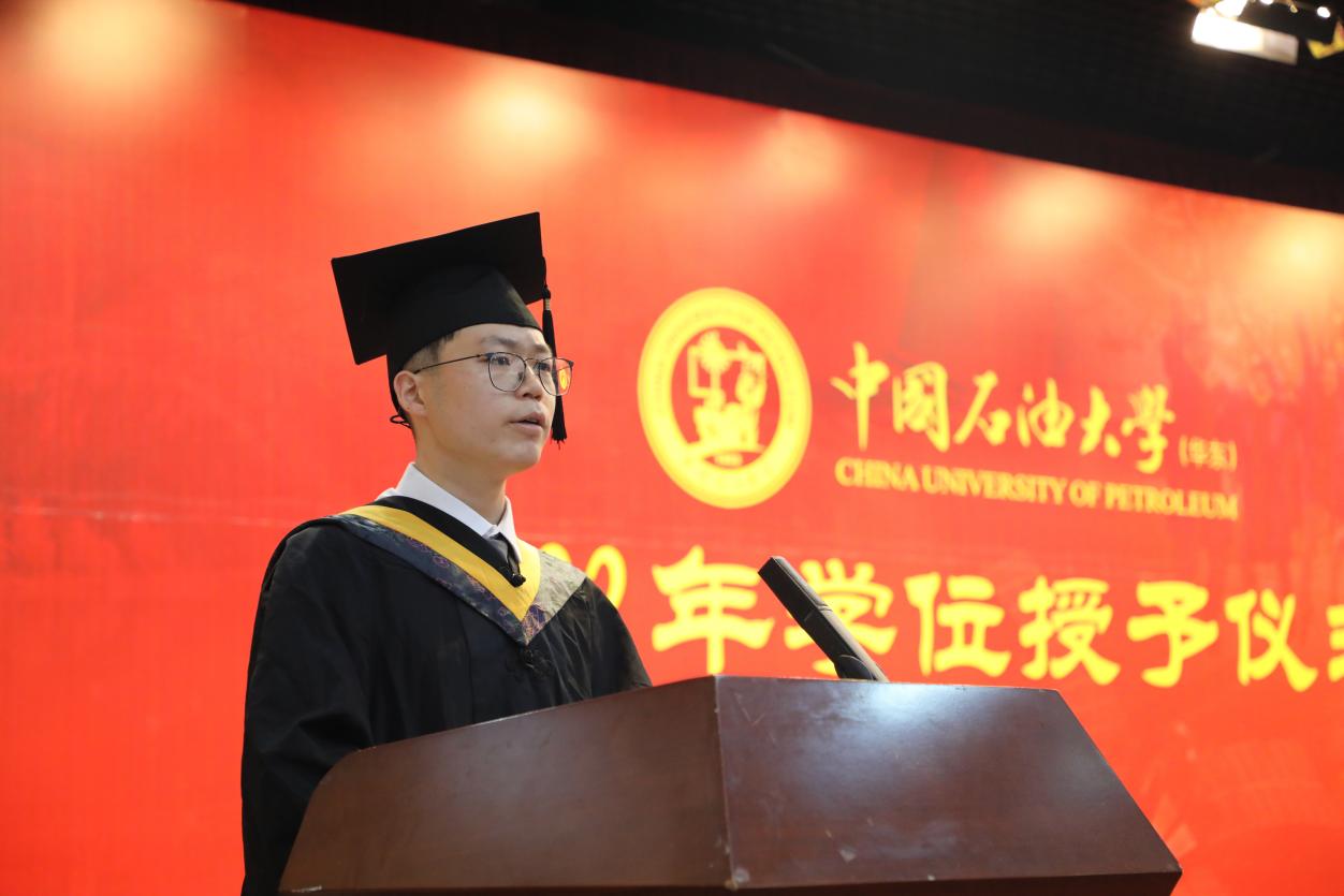 “浸润在学院浓郁的学术氛围和深厚的文化底蕴中,我们迅速成长为视野开阔、知识广博的新一代,敢于实践、勇于创新的新青年。虽然我的学生生涯已经结束,但我奔赴祖国需要的地方的奋斗才刚刚开始。未来,我们不论身处任何行业、在何岗位,只要带着学院给予我们的勘探精神烙印,一定能劈波斩浪、勇毅前行!”研究生代表、地质资源与地质工程专业魏永波在发言中表示。