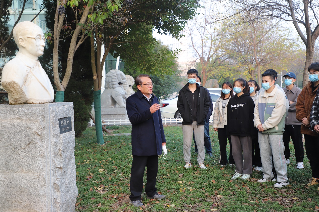 蒋有录教授向大家介绍道:“孙健初先生是第一位跨越祁连山的中国地质学家,探明并开发了玉门油矿,建成中国第一个石油工业基地,是中国石油地质的奠基人,培养了中国第一批石油地质人才。我国最早、最系统的沉积岩石学专著主要撰写人冯增昭,杰出教育学家、社会活动家、著名地质学家张一伟……,永利集团勘探系一大批杰出科学家为祖国石油地质行业做出了突出贡献,同学们要以他们为榜样,认真学习石油地质知识,传承好学院油气地质事业的火炬。”