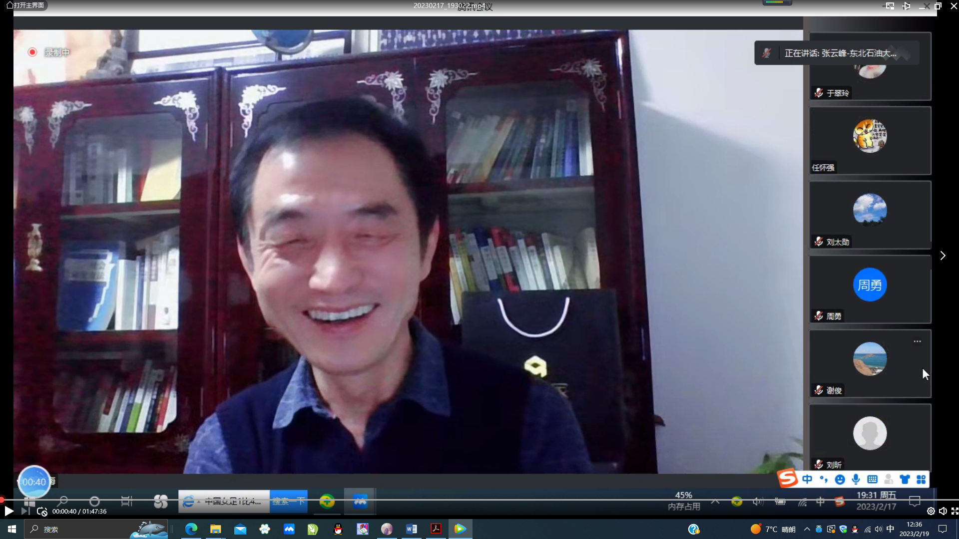 为完成课程思政示范课程数字化资源建设、加强审核把关、发掘和转化典型经验,2月17日,教育部地质学类教指委举办了“油田开发地质学”国家级课程思政示范课专家点评与交流会,也是教育部“油气田开发地质学”课程虚拟教研室的一次学习研讨会。地质学类教指委邀请了5位委员进行该课程建设资料的审核把关、会议点评与交流,本次邀请的专家包括:永利集团副校长操应长教授、中国矿业大学资源与地球科学学院郭英海教授、永利集团(北京)地球科学学院院长王贵文教授、吉林大学地球科学学院院长单玄龙教授和东北石油大学地球科学学院院长张云峰教授。永利集团油田开发地质课程团队以及来自山东科技大学、永利集团(北京)等兄弟高校的“教育部油气田开发地质课程虚拟教研室”骨干教师参加了本次专家点评和交流会,会议由教育部地质学类教指委副主任、永利集团副校长操应长教授主持。