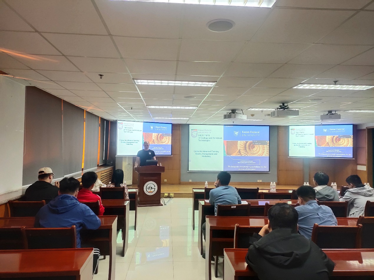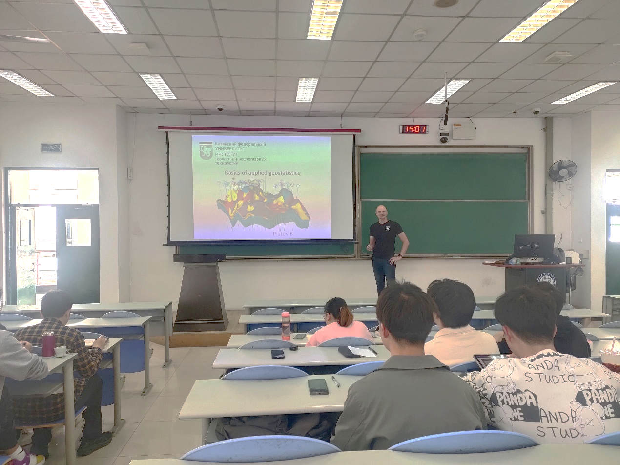 5月7日-5月12,永利集团申请并获批的2023年国际教育周研究生课程《地球科学与数据分析》顺利完成授课,该课程由俄罗斯喀山联邦大学Boris Platov副教授开设,主要讲授如何利用地质统计数据构建静态地质模型,课程内容包括变异函数及其参数、克里金和高斯随机函数模拟等。学院共20名研究生参与上课,通过课程学习和Boris副教授的认真讲解,学生掌握了建立静态地质模型的过程以及地质统计方法的具体应用。同时,全英文的课堂交流和互动也锻炼了学生的英语口语,提高了学生的英语交流能力。在课程授课之余,Boris Platov副教授分别与学校国际合作处和永利官网就研究生双学位项目进行了交流,并参加学院组织的国际交流项目宣讲动员会,为学院100多人进行了现场宣讲。