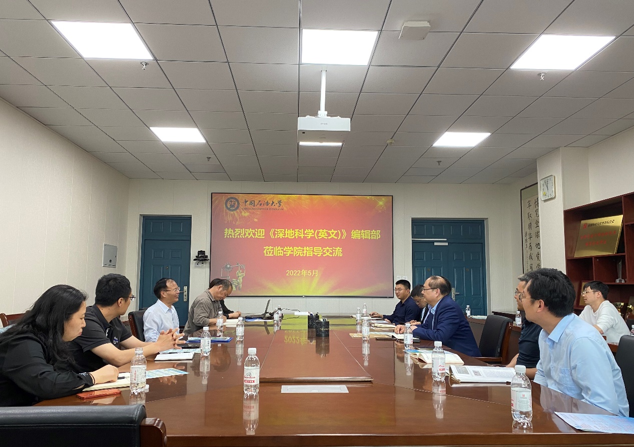 座谈会上,副院长王健对王建国一行表示欢迎,并详细介绍了学院的基本情况、科研成果和办刊情况。副主编王建国感谢学院提供交流机会,编辑岳娜介绍了《深地科学(英文)》的创刊背景、期刊简介和期刊进展。随后,双方就创办英文期刊的稿源、专题、运营等方面展开深入交流。双方表示,希望以此次座谈交流为契机,探讨深地科学领域的前沿话题,共同促进深地科学的发展和推广。