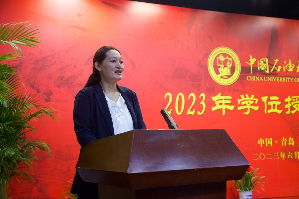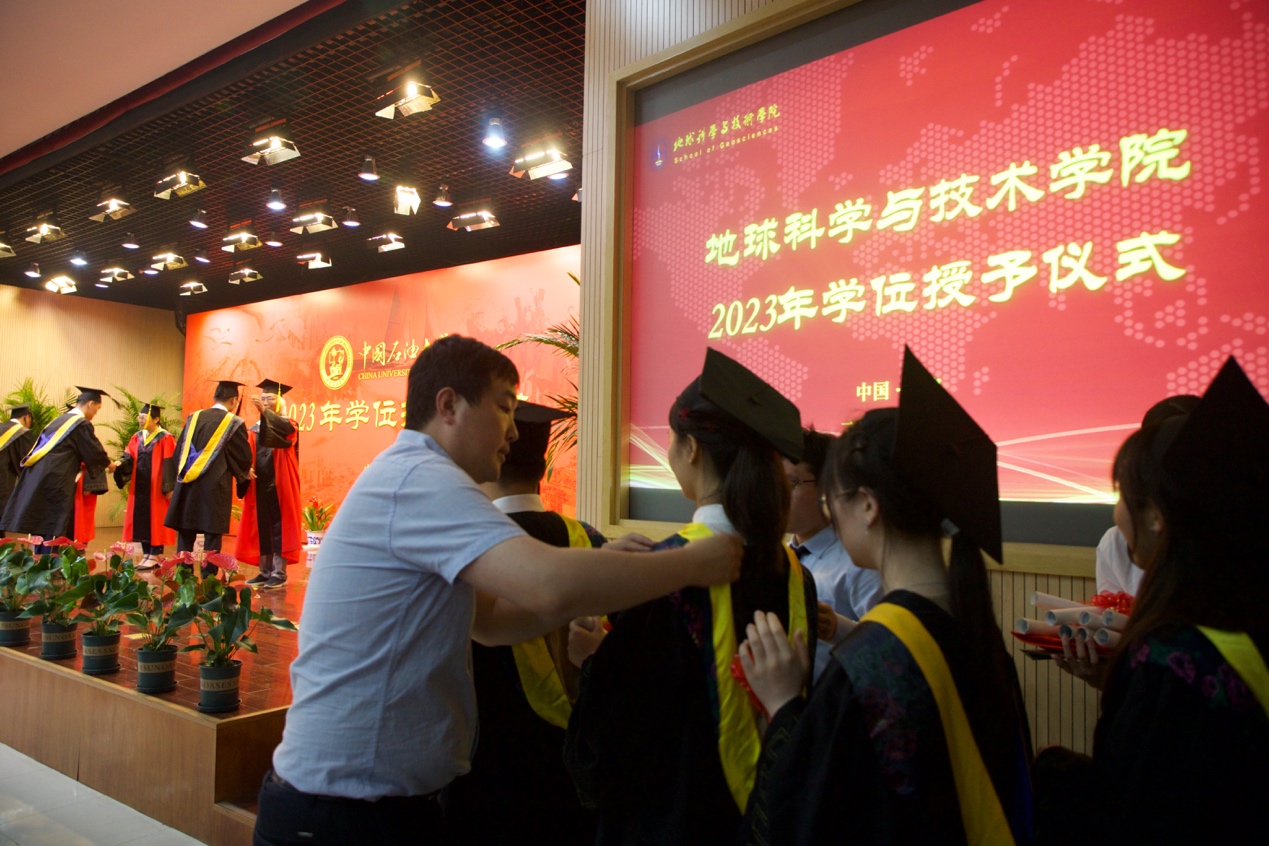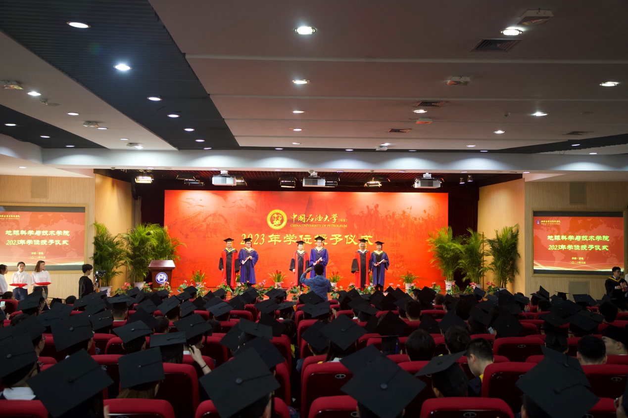 6月20日,学院2023年学位授予仪式在逸夫礼堂隆重举行。学院2023届全体毕业生,学校党委常委、学院党委书记赵放辉,学院院长刘华,副院长王健,学院教授委员会副主任范宜仁、委员周瑶琪,学位评定分委员会成员邓少贵、吴智平、陈勇、黄建平,测井系主任张锋及教师代表、家长代表参加学位授予仪式,学院党委副书记郑珊珊主持典礼和仪式。