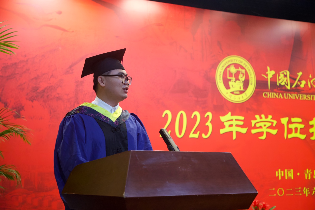 地质资源与地质工程专业张东林作为研究生毕业生代表发言,分享了在石大和永利官网一路以来的成长与感悟。他表示,作为一名勘探学子,将时刻牢记习近平总书记“能源的饭碗必须端在自己手里”的嘱托。在未来的科研工作中,将继续保持奋发图强、担当有为的精气神,为祖国能源事业的发展不懈奋斗。