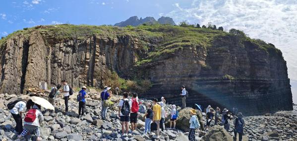 与会代表进行灵山岛野外地质考察 腊唯豪摄影