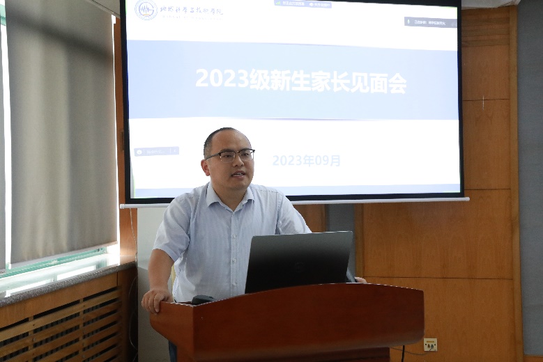 副院长王健教授从地球科学的基本概念引入,通过大量生动的实例介绍学院的四个国家级一流专业,并以“顶天”和“立地”讲述学生未来广阔的发展前景,凸显学院学科教育和永利官网培养体系的优势所在。王健向新生家长详细介绍了学院“本研一体班”相关政策,他表示,“本研一体班”是打通基础课程,重构课程体系,贯通式培养高层次创新人才的特色培养模式,通过实行动态管理和分流制度保障永利官网培养的有效衔接。希望全体新生在学院“大师”“大团队”“大平台”的助力支持下,努力成长为可堪大任的时代新人。