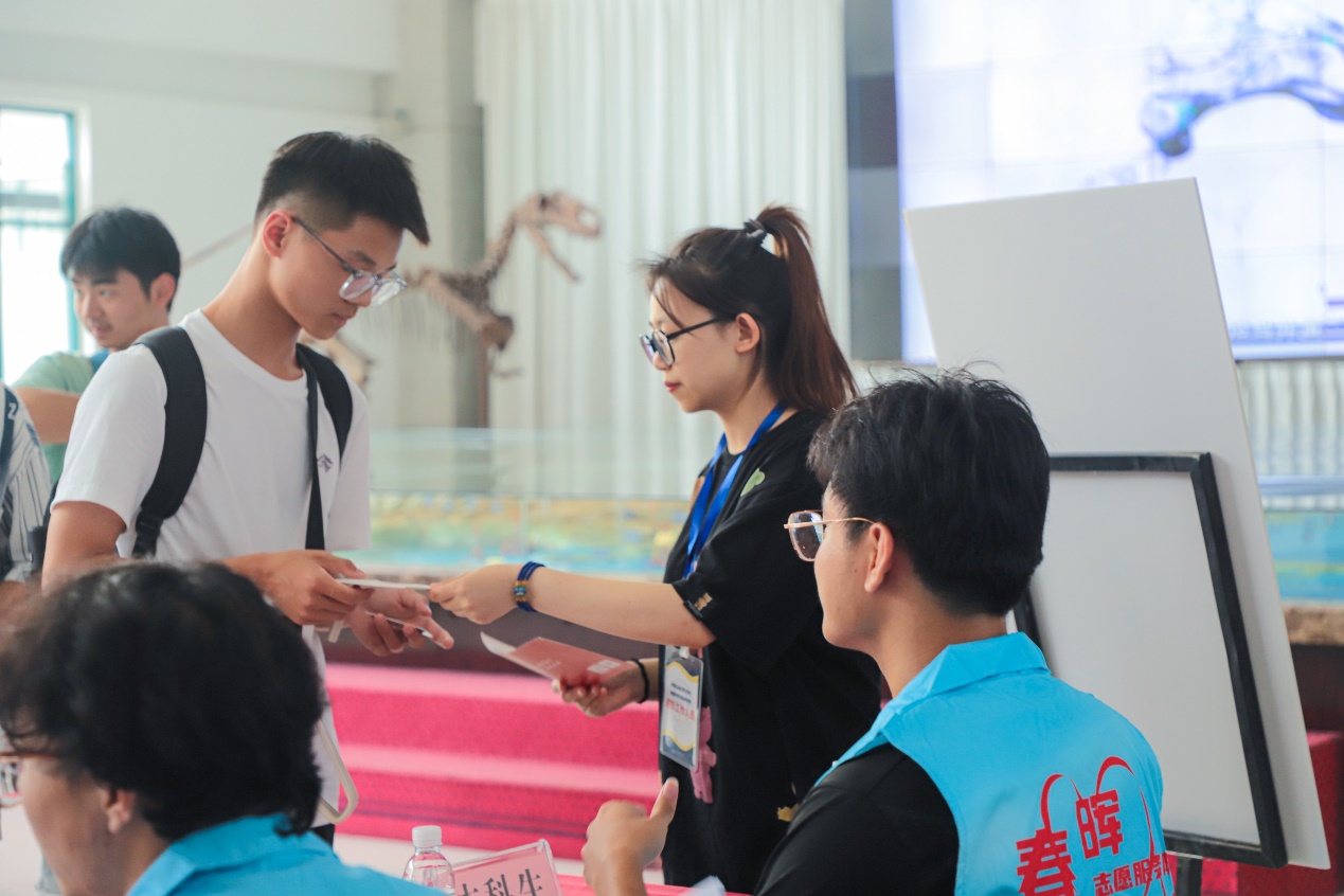 由学院学生会、春晖志愿服务队、易班、地院传媒工作室、双创中心等成员组成的学生志愿者们同样有条不紊地迎接新同学。在负责老师的带领下,春晖志愿服务队在宿舍楼门前欢迎新生,学院学生会为新生们提供帮助,易班负责入学资格审核及分发资料,还有一位位“红马甲”地院传媒小记者们记录下一张张青春洋溢的面容……从校门口到工科楼C座再到宿舍,学生志愿者们分工明确,高效有序。志愿者们活跃的身影,让校园的每一个角落都充满着青春活力。一路走来,支援者们都不厌其烦地解答新生所提的各种问题,引领他们完成所有报到程序。迎新结束后,地院传媒工作室赵馨怡感慨道,“作为志愿者,用镜头记录下每一位新生最美好灿烂的笑容。一下午的拍摄虽然很累,但我觉得一切都很值得,我和他们一样幸福快乐。”