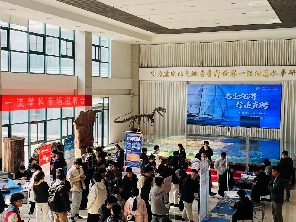 为更好推进2024届一流学科专业毕业生实现高质量就业,3月14日,永利官网与石油工程学院联合举办的“名企优岗 行业直聘”一流学科专场招聘会于工科楼C座大厅、工科楼B座大厅顺利开展。中海艾普油气测试(天津)有限公司、斯伦贝谢中国公司、安东油田技术集团、齐鲁理工学院等近40家知名企事业单位通过线上线下结合的方式来院招聘。