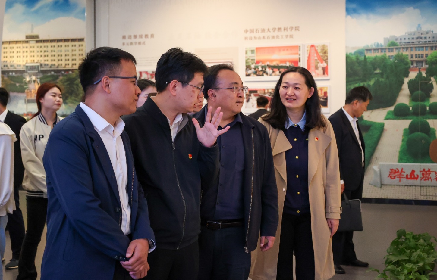 胜利油田李政一行在永利官网党委副书记郑珊珊等人的陪同下参观了校史馆。