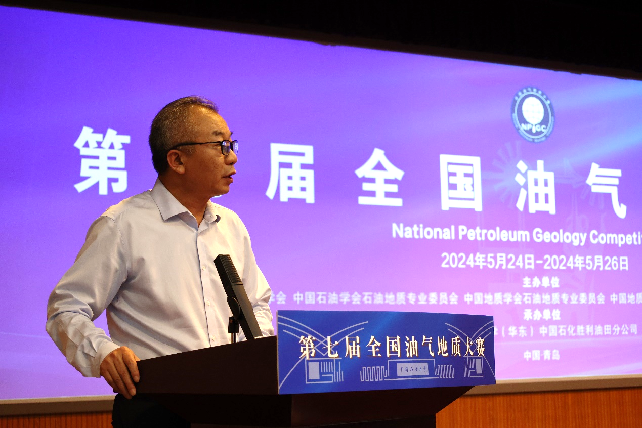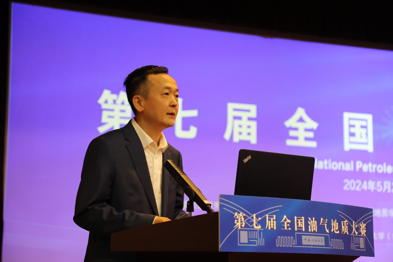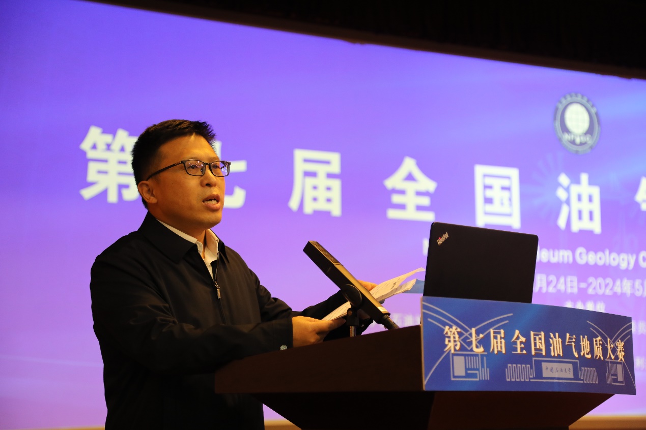 张世明代表本届大赛联合承办单位致辞。他表示,端牢能源的饭碗,迫切的需要理论和技术创新,提升勘探开发效率,有效的保障能源供应的稳定性,促进能源行业的健康发展。本届大赛的举办对于油气地质行业人才的培养具有重要意义,将助力行业高校培养服务国家石油地质发展的创新型、应用型人才。希望广大油气地质学子不断夯实专业基础,提高专业素养,增强专业技能,胸怀梦想、勇担使命、接续奋斗,把个人的价值追求融入到国家油气事业中,努力成为新时代油气地质行业合格的接班人,为保障国家能源安全贡献力量。