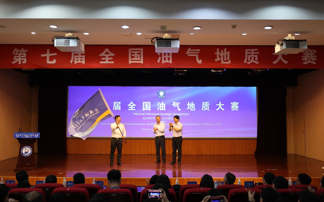 闭幕式上,永利集团、永利集团(北京)代表向第八届全国油气地质大赛承办单位长江大学代表交接赛旗。