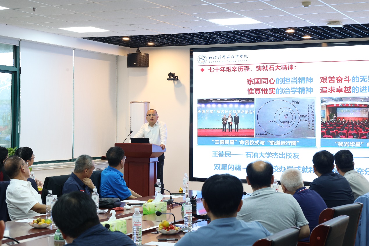 地球物理系党支部书记张凯向校友们介绍系事业发展情况