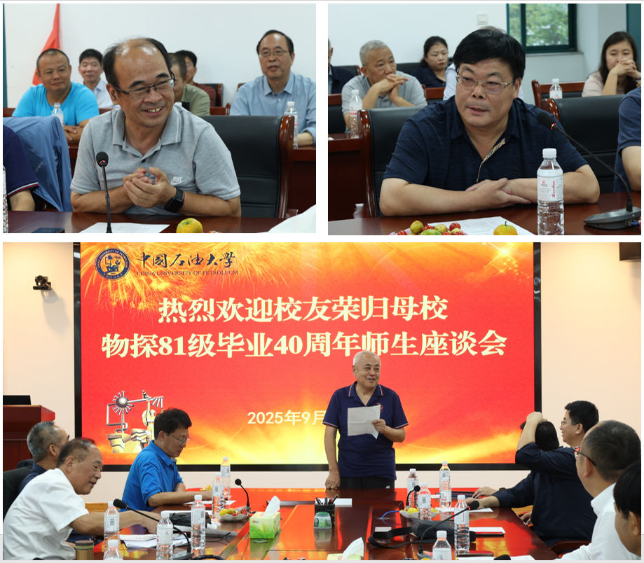 9月22日下午,秋阳和煦,情谊融融。学院在工科楼C座271会议室隆重举行了物探81级校友毕业40周年师生座谈会。学院院长宗兆云、党委书记牛庆玮,副院长孟凡超、党委副书记穆洋洋,地球物理系班子全体成员和老教师代表印兴耀老师、李振春老师、栾述文老师,与从祖国四面八方荣归母校的物探81级校友们欢聚一堂,共同追忆青葱岁月,畅谈学院发展,现场气氛温馨而热烈。