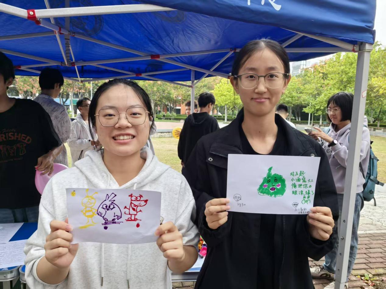 作为情感表达的创意平台,“压力涂鸦区”备受青睐。同学们在此自由书写、随性涂画,将内在情绪转化为可视化的艺术表达,实现了情绪的疏导与释放,成为了活动现场一片宁静的“心灵栖息地”。参与完各环节的同学还获得了地院心站准备的暖心棒棒糖,在收获知识与快乐的同时,也品尝到一份甜蜜的鼓励。