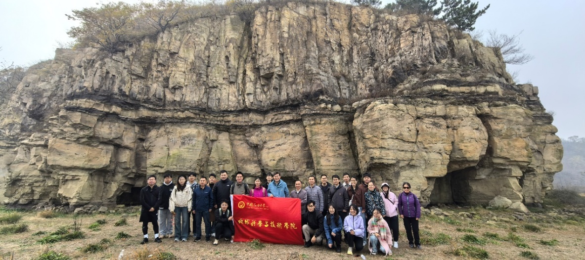 活动首站,37名师生党员赴马山地质公园开展现场研学。马山地质公园是青岛地区重要的地质遗迹保护与科研科普基地,园区内保存有柱状节理石柱群、沉积构造及接触变质带等多类型地质景观,被誉为“袖珍式地质博物馆”。这些珍贵遗迹充分展现了地壳演化过程中火山活动、沉积环境变化与构造变形的综合效应,是融合党建教育与专业教学的天然课堂。在资源系党支部书记张立强的带领下,党员们依次走近马山石林柱状节理、接触变质带等典型地质点位,详细了解其形成背景与演化过程。现场教学中,张立强结合地学专业知识进行了深入讲解,党员教师们亦立足自身科研方向,就区域火山作用、沉积演化与构造活动等问题展开热烈交流讨论。师生在实景中学习、在研讨中思考,进一步实现了理论知识与自然实例的紧密结合,深化了以专业优势服务社会发展的认识。参观过程中,资源系党员师生还与来自中国海洋大学的师生开展了现场交流,从地质遗迹保护和科普宣传等方面互学互鉴,进一步拓宽了思路,促进了院校间地学教育与永利集团工作的深度互动。
