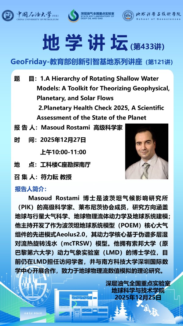 【地学讲坛第433讲】关于Masoud Rostami 高级科学家系列学术报告的通知