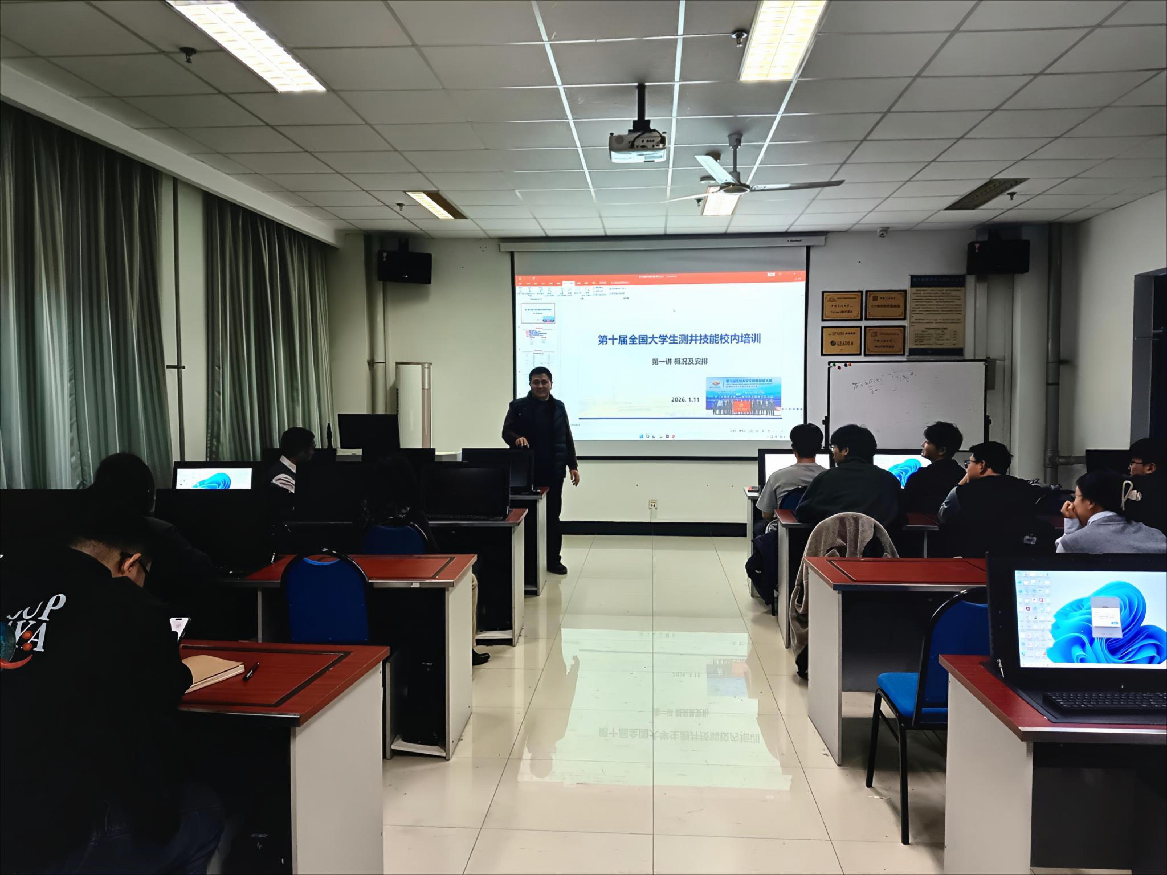 1月12日,第十届全国大学生测井技能大赛备赛首次专题培训会如期召开。本次培训会由带队老师肖佃师主讲,葛新民、张福明、张绚华等莅临指导。会上,肖佃师紧扣赛事核心要求,对理论知识模块、实操技能要点及评分标准进行系统拆解,深入剖析各竞赛环节的得分关键与潜在失分风险,并结合历年真题案例,精准给出针对性备赛策略与科学训练方法。张福明结合往届带队经验,从实战角度补充分享备赛技巧,为队员们答疑解惑。张绚华、葛新民充分肯定了候选队员的潜力与备战热情,鼓励大家珍惜专项培训机会,扎实筑牢专业根基,精进实操技能,在团队协作中凝聚合力、共同提升,力争在大赛中充分展现测井系学子的过硬专业素养与昂扬精神风貌。1月14日,李盛清教授开展阵列声波专题培训,他系统讲解了阵列声波资料质量评价、预处理流程、声波时差提取及岩石力学与各向异性评价等核心内容,并结合实际案例生动演示了阵列声波在各向异性分析与气层识别中的实践应用。课程内容聚焦赛事需求、针对性极强,为参赛学生扎实掌握阵列声波处理相关技能提供了有力指导与坚实支撑。